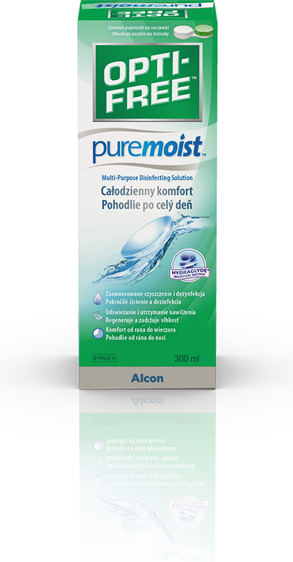 Liquid OPTI-FREE PureMoist offers not only long-lasting hydration. It also contains a proven dual system of disinfection of lenses, while remaining gentle for sensitive eyes. Ingredients POLYQUAD and ALDOX protect against the harmful effects of microorganisms, bacteria, fungi.