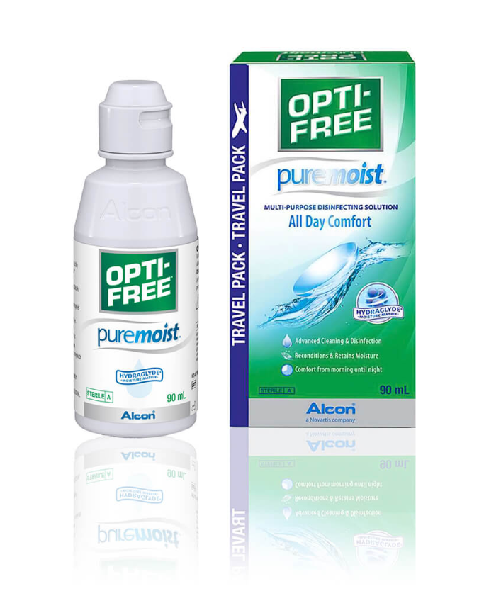 Liquid OPTI-FREE PureMoist offers not only long-lasting hydration. It also contains a proven dual system of disinfection of lenses, while remaining gentle for sensitive eyes. Ingredients POLYQUAD and ALDOX protect against the harmful effects of microorganisms, bacteria, fungi.